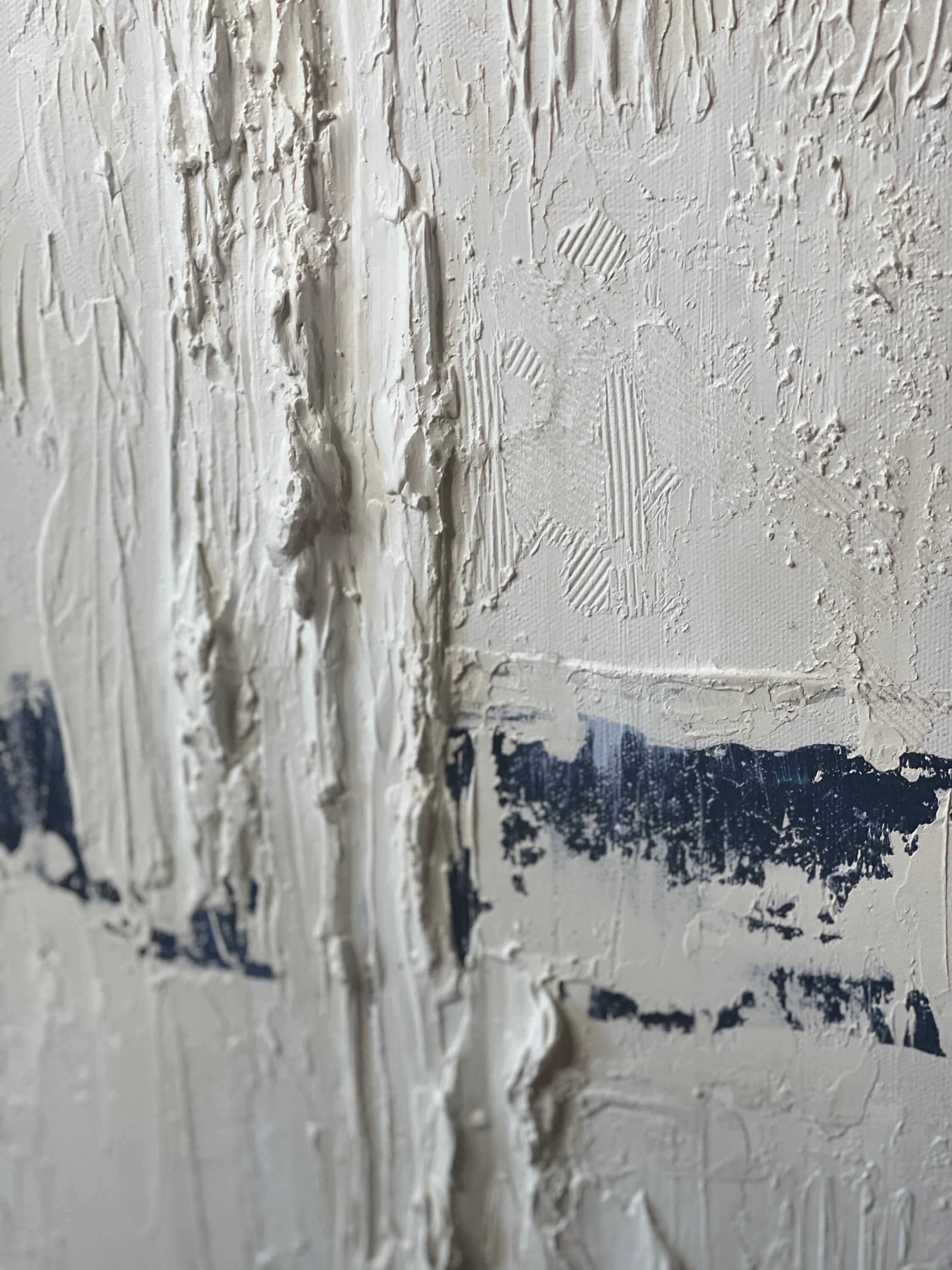"Greece" by Th e Ty Gallery. This one of a kind hand-made piece is inspired by the country "Greece". It is a minimalist design with a maximalist outcome. The hint of blue gild is engulfed with abstract white sand.